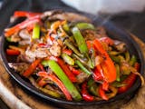 Chorizo, refried beans, mozzarella cheese, cilantro, onions & avocado.
